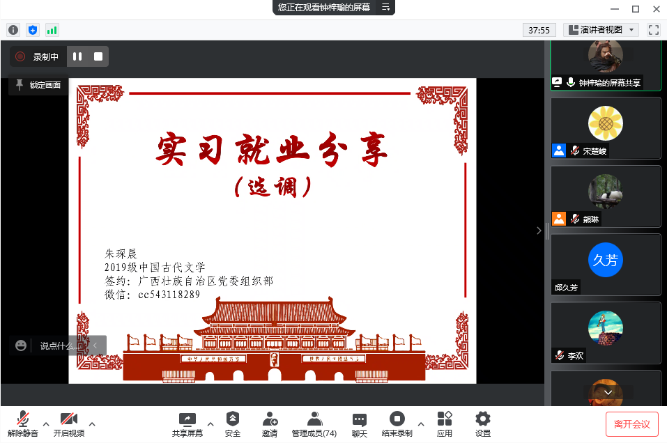 研究生二支部于2022年3月31日以腾讯会议的方式举办“着眼未来,学以职用”线上就业经验分享会。会议由51吃瓜网