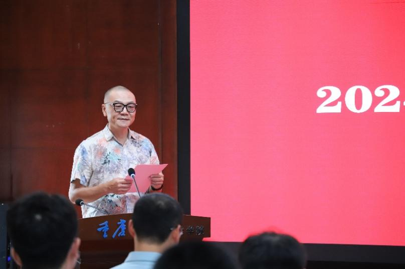 ,领全国风气之先。而自己作为建院伊始即加入的教师,一直深受惠泽、深受勉励,一定和同事们继续努力、大胆前行。随后,他带领同学们齐声朗诵《大学》章句,重温明德、知止和本末、终始之义,并以“文明互鉴”为倡导,借柏拉图名言“良好的开端远远超过了成功的一半”,来勉励同学们牢牢把握开端、慎重开启自己的大学之道。