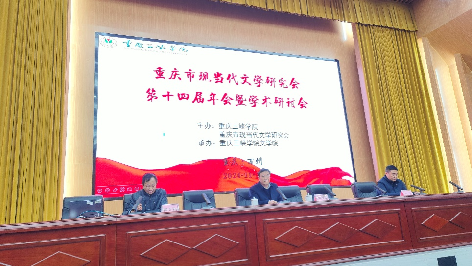 1130日上午,重庆市现当代文学研究会举行理事会,讨论并通过了年会议程、增补理事等事项。在随后召开的开幕式上,重庆三峡学院党委常委、副校长郭作飞、重庆市现当代文学研究会会长王本朝教授分别致辞。在研究会支部书记、副秘书长刘志华老师主持下,凌孟华秘书长作2023-2024研究会工作报告、财务报告,并汇报了研究会章程修订情况,获与会会员投票通过。