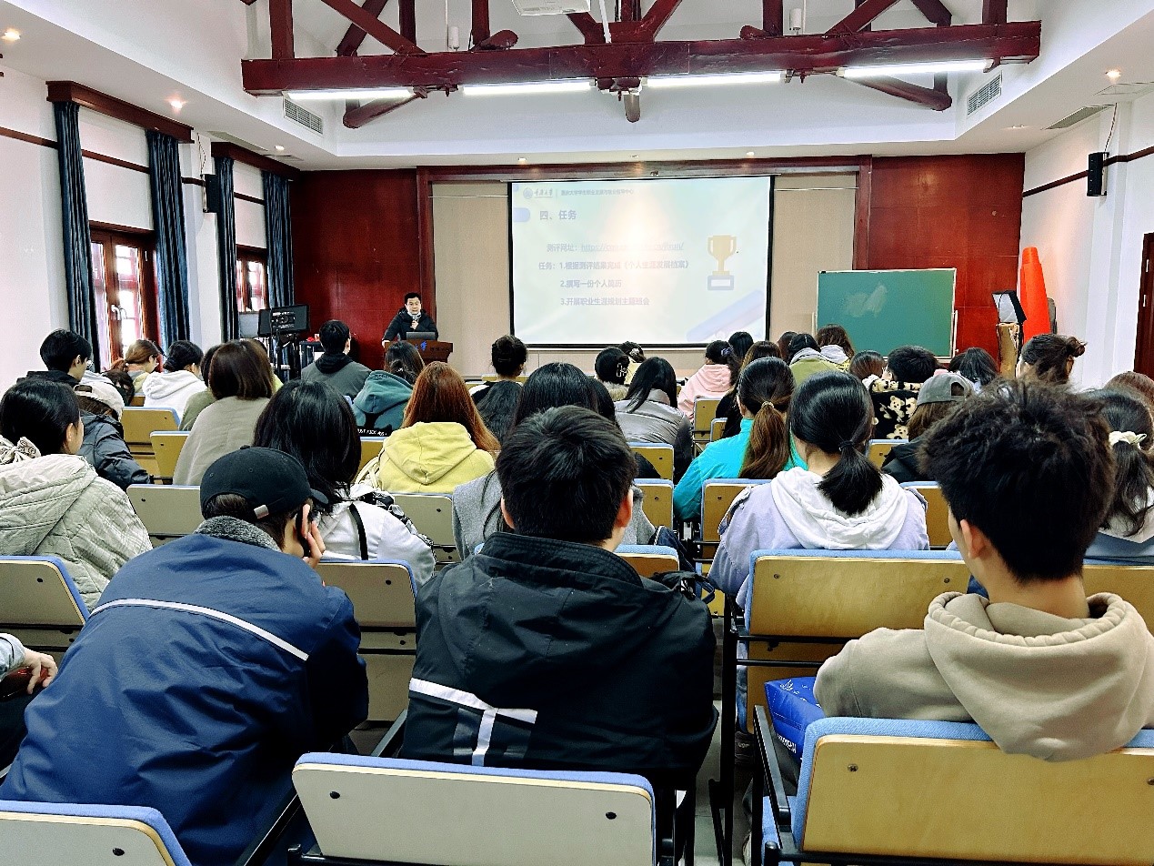 高宏佳以同学们“为什么要做职业生涯定向”的问题出发,指出目标是行动的方向和根本,并指出大学阶段处于生涯探索阶段,个人生涯发展受生涯目标、生涯角色、生涯发展能力、生涯角色重心管理等因素影响,鼓励同学们设定合理的生涯目标,并付之行动。结合学院培养特色,对于即将面对专业分流的同学,高宏佳建议大家根据个人兴趣、性格特点、职业规划等方面进行选择。并指出现阶段大家普遍存在的内卷、迷茫、动力不足、个人特色不鲜明等现象,鼓励同学们从生涯规划角度及时进行生涯测评、生涯回检,反思总结个人成长与不足,发展个人特色,为下一阶段成长做好充分准备。