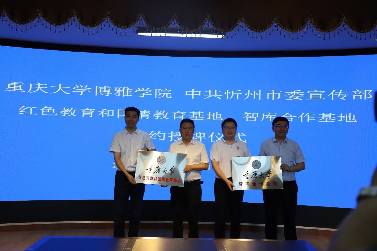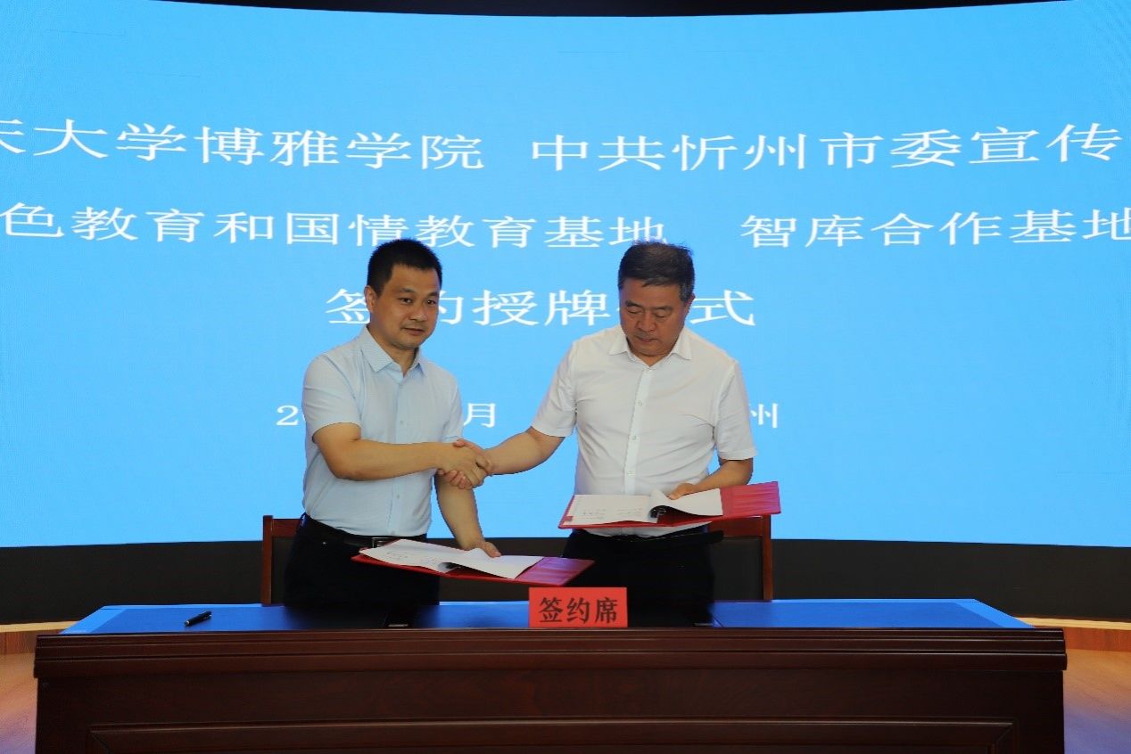 红色教育和国情教育基地、智库合作基地授牌。授牌仪式结束后忻州市领导与博雅师生亲切会谈,师生们积极分享了对忻州的初印象以及对本次研学的期待。
