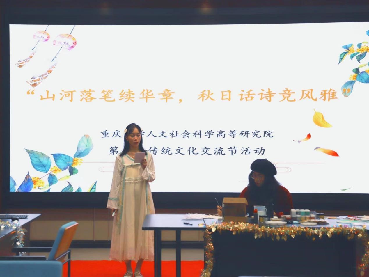 “歌响舞分行,艳色动流光。”中场自由活动期间,为使大家感受古典之美、回望锦绣山河,迅速融入传统文化的典雅氛围中,由周笑竹、杨虹丽同学为大家带来一曲《烟雨行舟》,清扬婉转的曲调将大家带入烟雨朦胧的雅致江南,跨越时空碰触国风雅韵,铺展诗书画卷,共传经典文脉;此后,刘明浩同学为大家演唱了歌曲《天外来物》,在古典与现代的碰撞中,平仄相撞,咬字铿锵,一叶文字轻舟,一点跃然音符,载大家追寻悠远的乐章。随着轻松愉快的曲调,大家深深沉浸在古典的雅致韵味之中,互相交流着彼此对传统文化的感知,迫不及待要对接下来的内容展开探索。