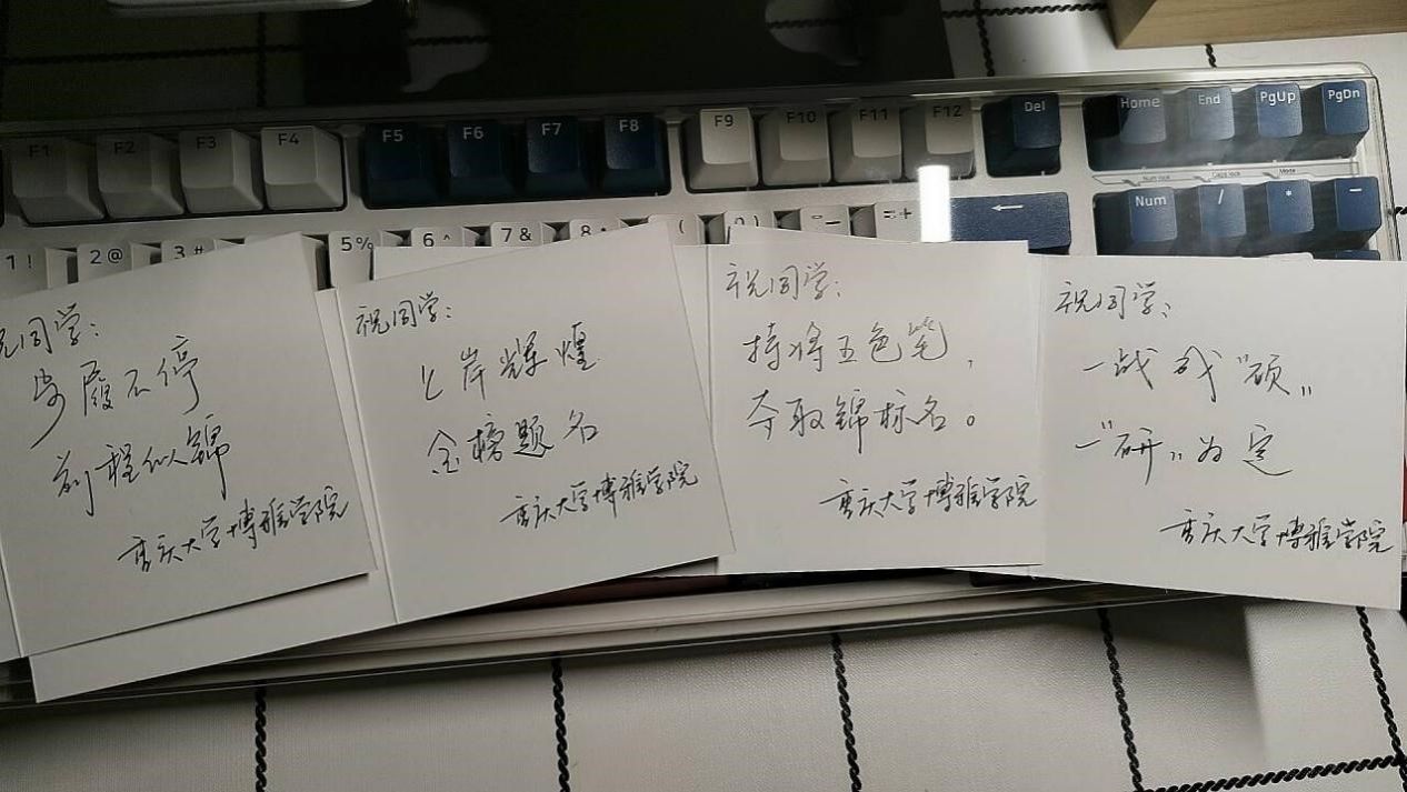 写明信片的一笔一划间都是对大家最诚挚的关心和祝愿,在研途“最后一公里”暖心相伴。备考学子们纷纷表示真切感受到了来自学院的暖心关怀,一定会全力准