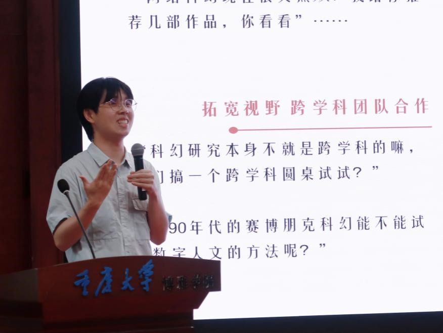 “科幻文学与科技人文”学术集群、“四十二史”团队、《科幻人文》团队以及中文科幻学术工坊等青年学术社群中的收获,并从砥砺思想激发问题意识、获得研究材料等方面的支持、拓宽视野跨学科团队合作、融入青年学术共同体等四个方面分享了青年社群的优势。
