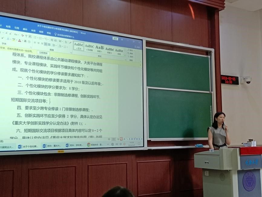 创新实践学分认定办法(修订)》,她向同学们介绍了创新实践学分的具体分类、各项分值、认定规则等,同时为学生多方面获取学分提供了指导性建议,提醒同学们根据个人情况及时做好相应规划。
