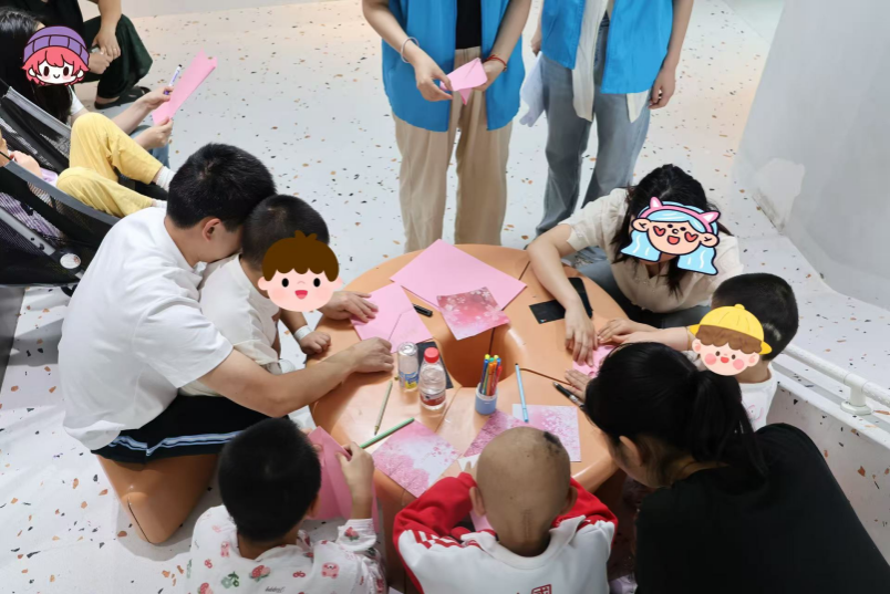 本次活动也给志愿者们带来了难忘的体验。在共读环节,虽然低龄儿童识字量有限,但令人感动的是,每位小朋友都在家长陪伴下坚持完成朗读,展现出极高的参与热情。在涂色环节,一位小朋友特意挑选了小猫线稿,边涂色边向志愿者讲述:"我要涂成灰色,因为我家的小猫就是灰色的。"她稚嫩的话语中,既流露出对爱宠的思念,也饱含早日康复的美好期盼。在"放纸飞机"环节,孩子们热情高涨,积极参与。在家长的陪伴和指导下,他们认真写下心愿,仔细折叠成纸飞机。随着一声声的欢呼,承载着"健康快乐""茁壮成长"等美好祝福的纸飞机一同起飞,在阳光下划出优美的弧线,带着孩子们的纯真期待飞向远方。