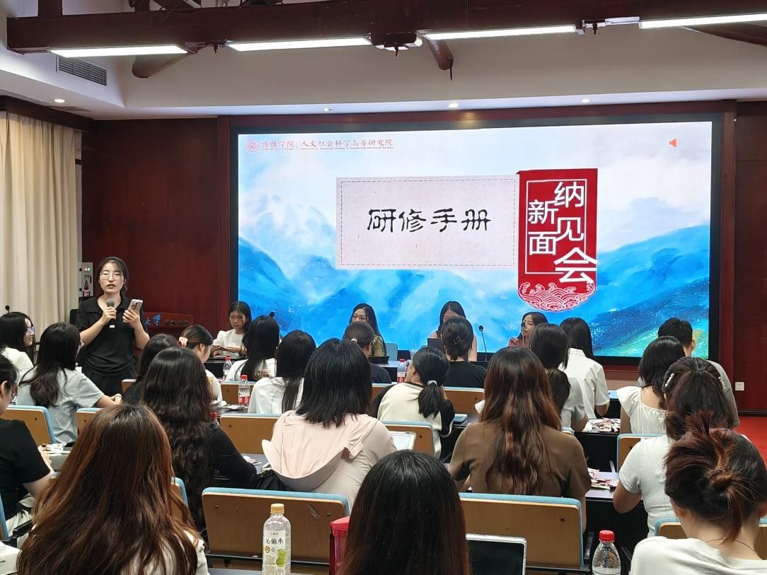 知行引航:部门亮相展担当,经验传递助成长。在轻松的破冰后,2025级新生依次进行自我介绍。简洁而真诚的表达里,满溢着对新征程的期待与活力。随后,院团委与研究生会各部门负责人依次登台,以“职能+案例”的方式立体呈现部门特色:办公室聚焦“统筹协调”,分享活动筹备的“时间管理秘籍”;实践部结合“学术调研”案例,详解如何对接校内外资源;宣传部以“新媒体运营”为切入点,揭秘爆款推文的创作心得;文体部则用“迎新晚会筹备”直观展示活动背后的团队协作。其中,爱心社部长王钲惠特别提醒新生:“研究生阶段不是‘只做学问的机器’,更要学会‘给心灵松绑’——合理安排和规划自己的时间和精力,这些‘小事’往往是持续成长的‘能量源’。”