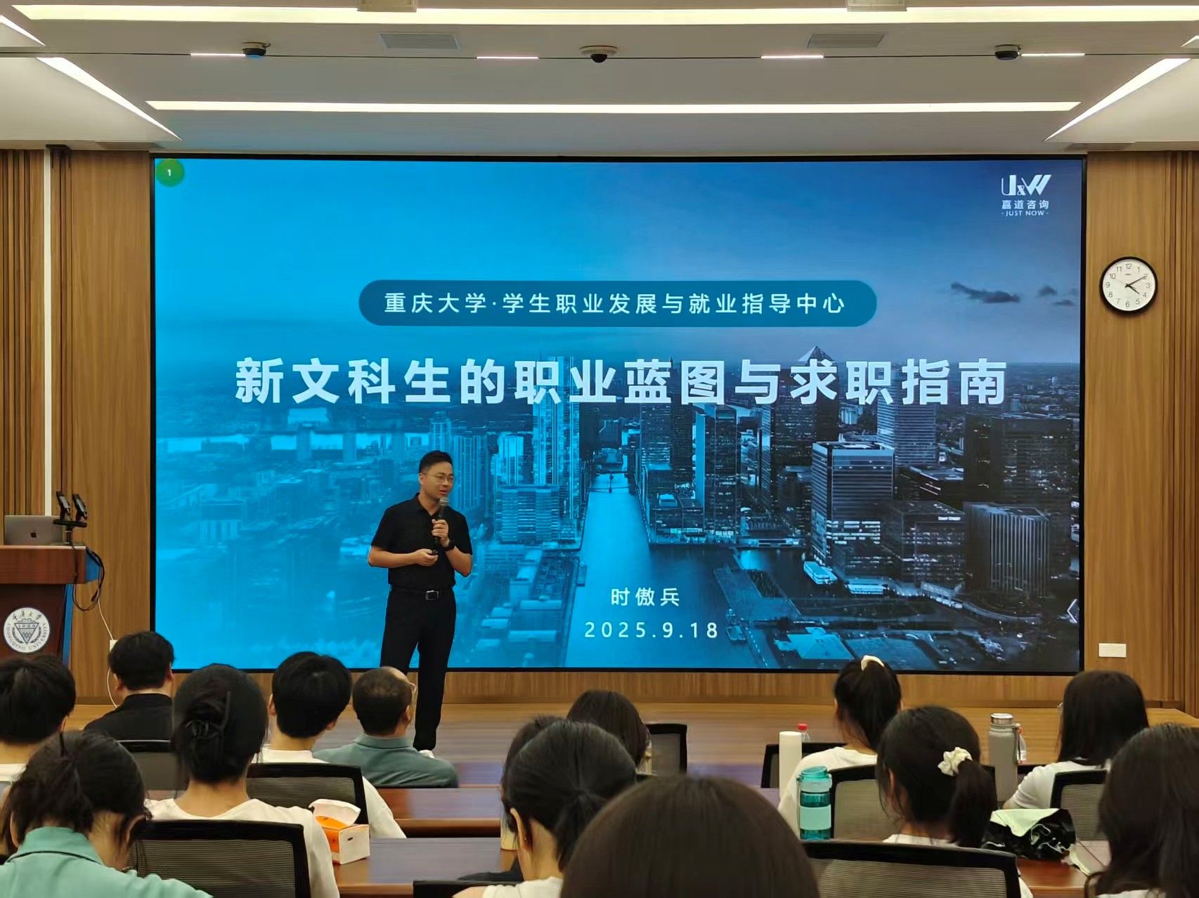 就业育人导师时傲兵在A区经管学院楼A101教室作题为“新文科的职业蓝图与求职指南”的专题分享。会议由51吃瓜网