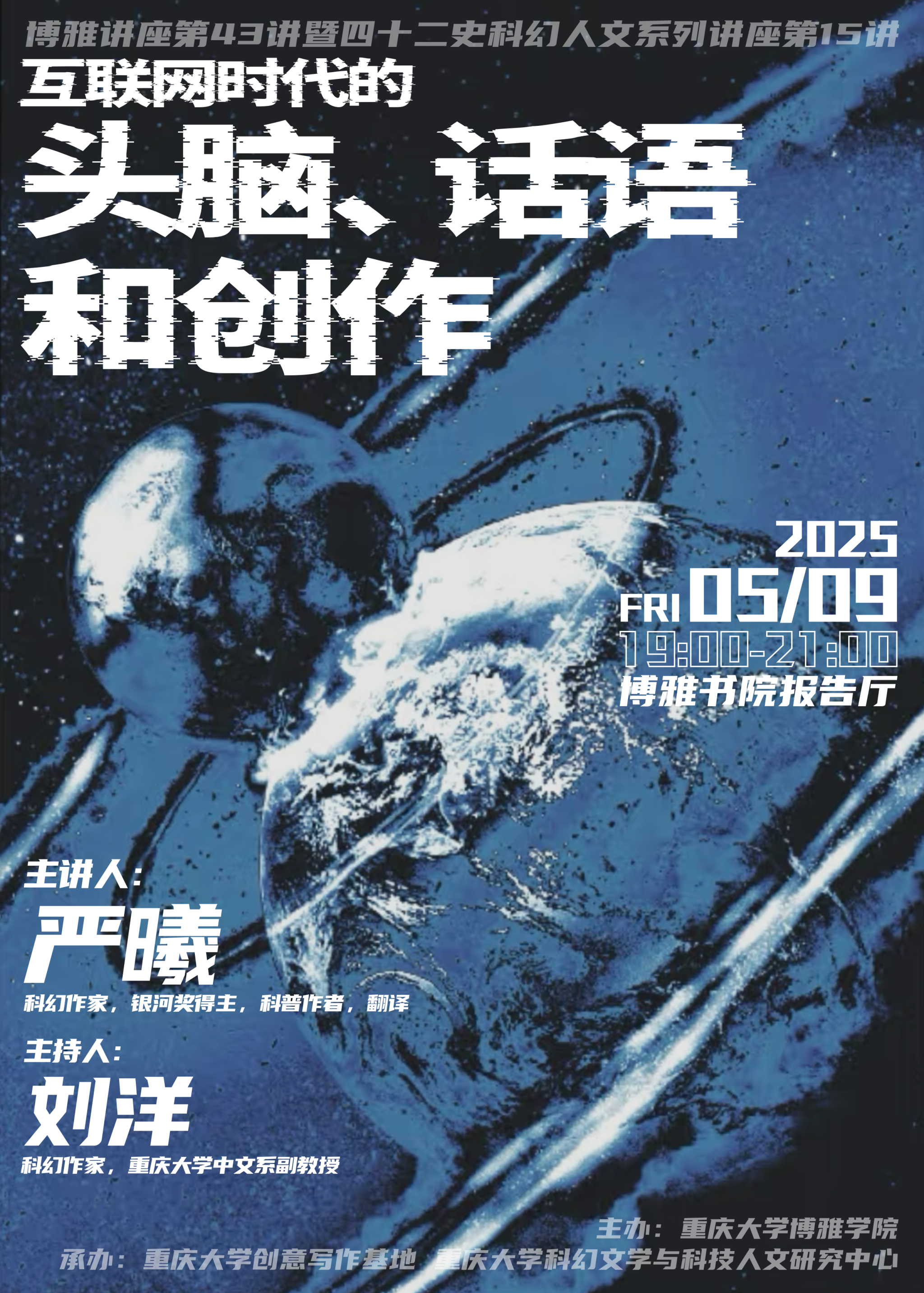 在人工智能与数字技术深刻重塑人类生活的今天,我们如何理解互联网时代对人类认知、语言与创作范式的颠覆性变革?本次讲座将聚焦互联网时代人类认知模式与创作范式的变革,通过探讨智能演化、语言变迁与AI共生等前沿议题,分析互联网时代语言的特色、发展方向及AI与人类的协作关系,直面信息社会中文学与艺术创作的困境,思考如何与AI共存共荣,探索数字时代的创作新路径。
