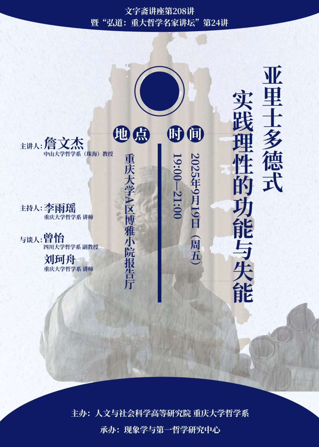 通过系统分析《论灵魂》与《尼各马可伦理学》等核心文本,结合对当代研究的辨析批判,澄清亚里士多德实践理性的本体论地位与功能机制。讲座将深入探讨实践理性与实践推理、工具理性之间的区别,澄清实践理性的完满实现,即实践智慧的内涵,以及实践理性在失能时的表现。