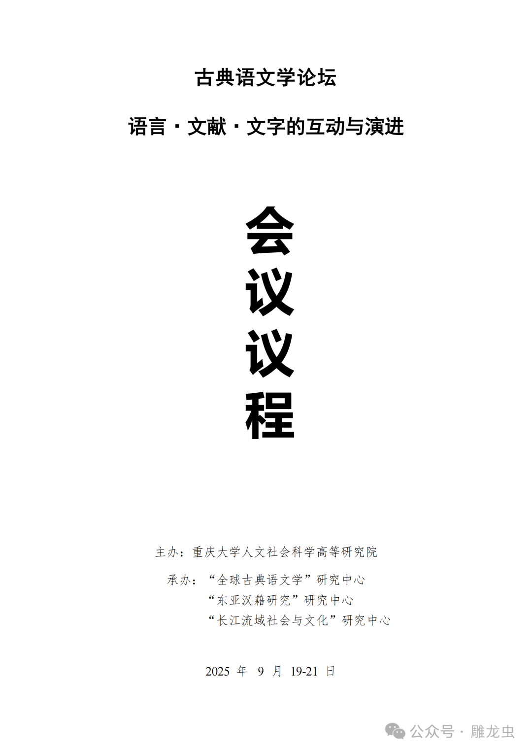 会议 | 古典语文学论坛:语言·文献·文字的互动与演进会议议程