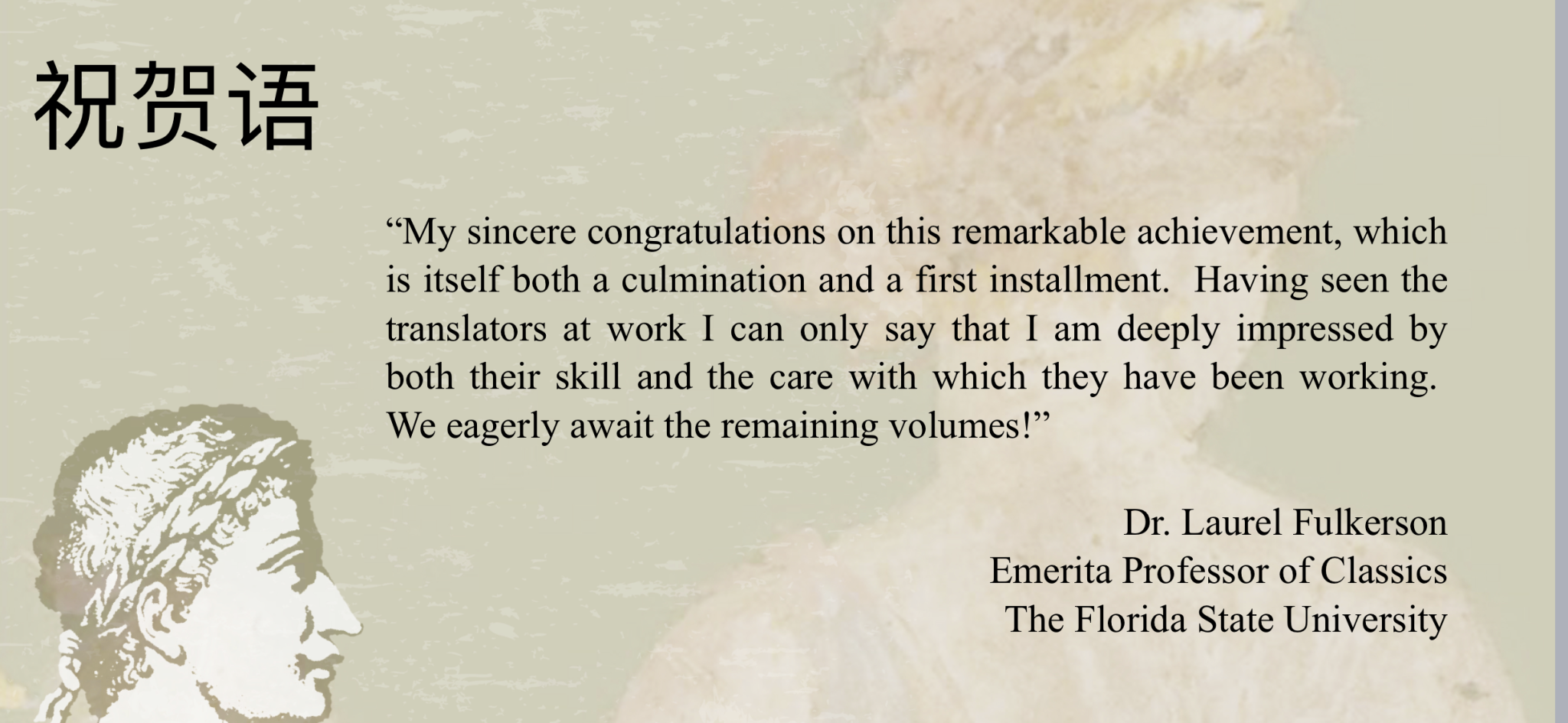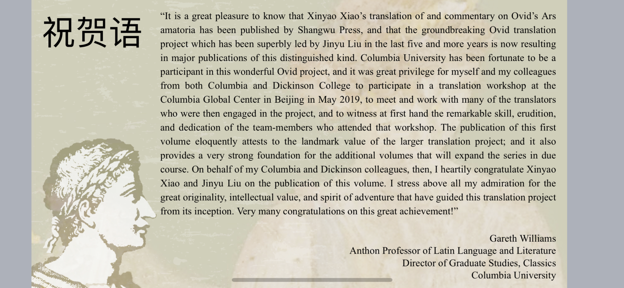 刘津瑜,美国埃默里大学罗马史讲席教授,上海师范大学特聘教授、博士生导师,曾任美国德堡大学古典系教授及系主任,美国古典学会理事。主要研究领域为罗马城市社会关系、拉丁铭文学、西方古典学接受史和古罗马文学汉译。著有Collegia Centonariorum: the Guilds of Textile-dealers in the Roman West、《罗马史研究入门》,主编《全球视野下的古罗马诗人奥维德研究前沿》(上、下卷)。