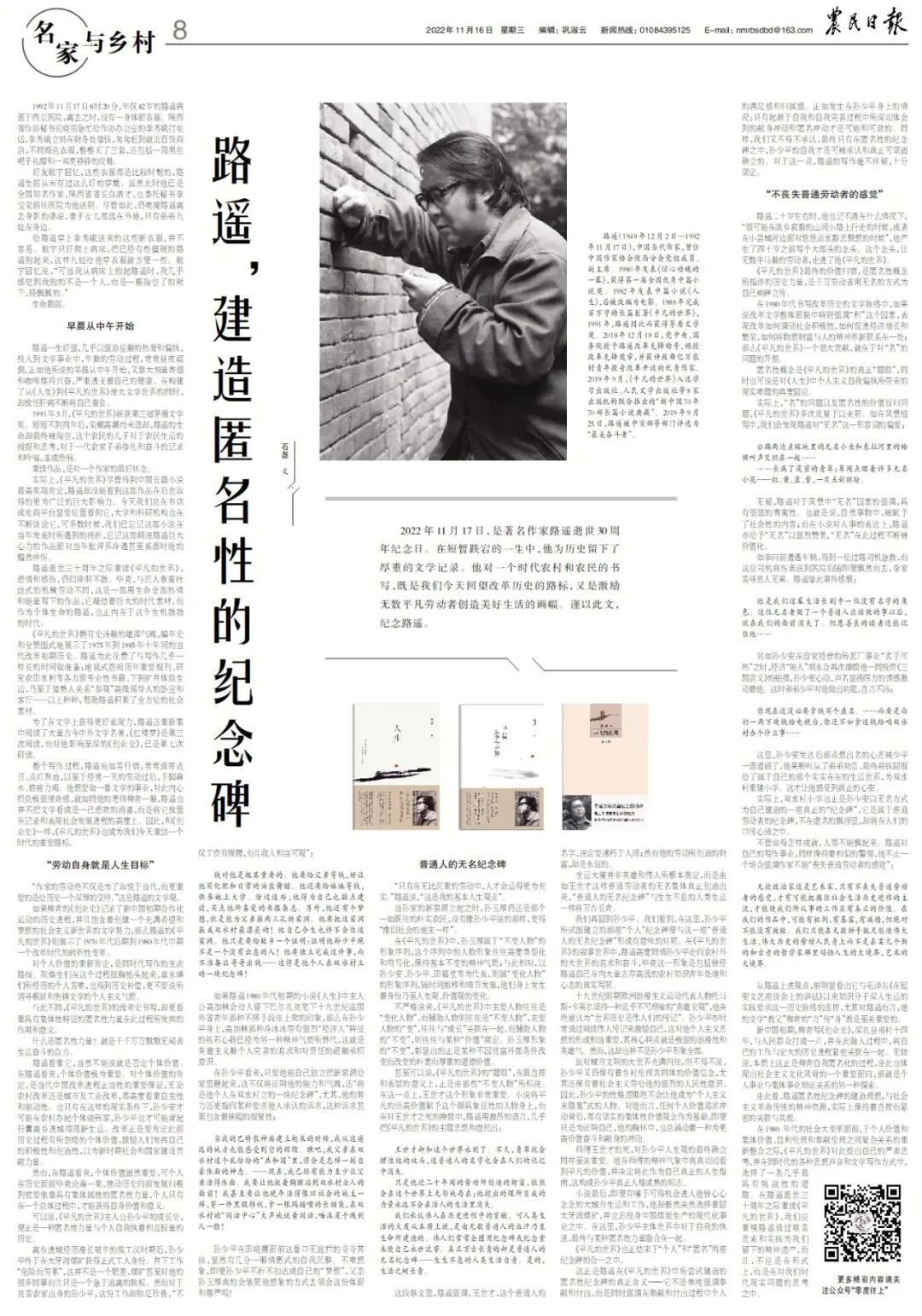 生活大厦并非英雄和伟人所根本奠定,而是由如王世才这样普通劳动者的无名集体真正创造出来,“普通人的无名纪念碑”与生生不息的人类生活一样将万古长青。