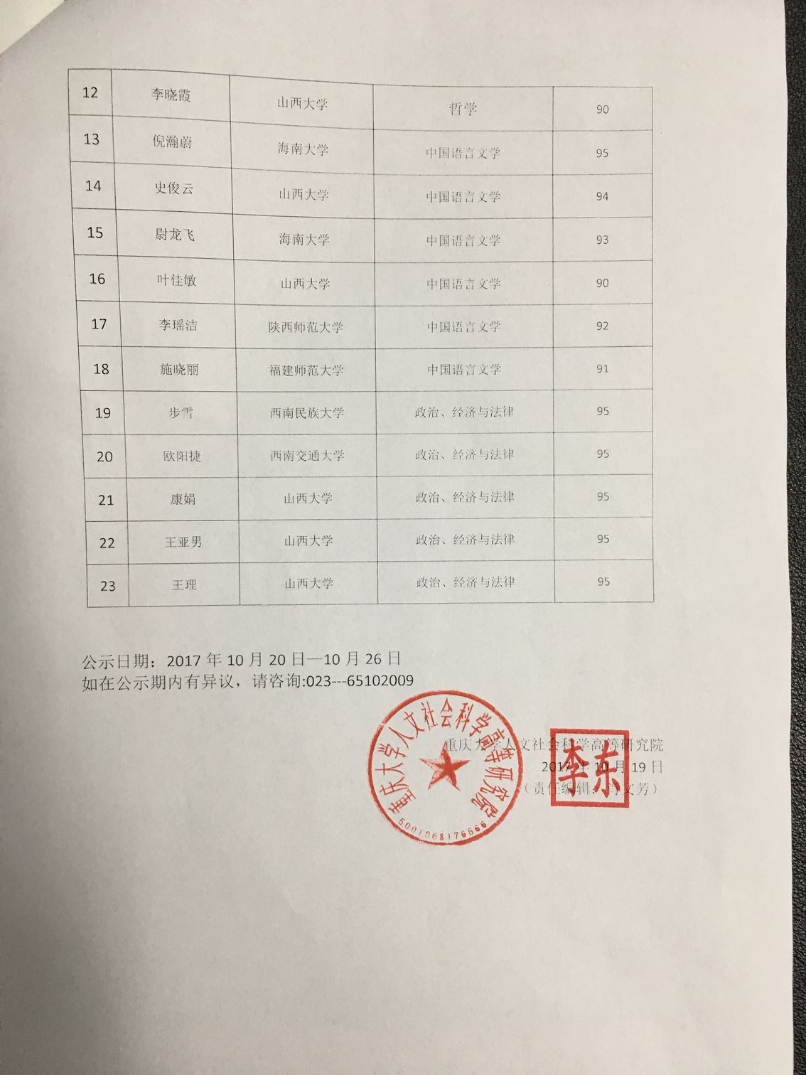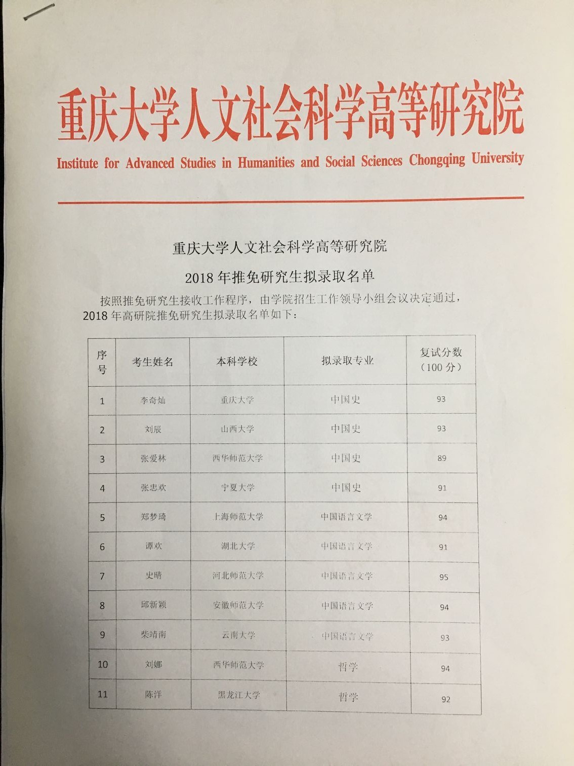51吃瓜网 高研院接收2018年推免生复试成绩公示
