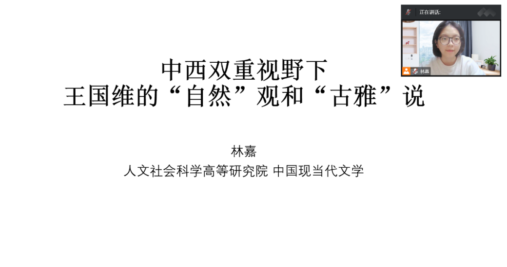 林嘉以“中西双重视野下王国维的‘自然观’和‘古雅说’”为题对罗著第五、六章做了导读。她认为第五章重点考察了王国维自然观与西方浪漫主义时代之后流行的三种自然观——原始主义、有机主义、非理性主义的关系。后者通过各种途径,以彼此交错的方式汇聚到王国维的自然观中,成为了他理论主体,而自然在中国古代诗学中承载的种种意义则要么遭受压抑,要么被放逐到边缘位置。而第六章则重点分析了王国维“古雅说”不可分割的两种传统:一是以康德、叔本华为代表的西方天才理论,一是以南宋典雅词派为代表的中国古代词学中尚雅传统。王国维的“古雅说”正是“外来之观念与中国固有之材料”相互结合的产物。然而,由于王国维对东西方文化之间的差异缺乏足够认识,导致了王国维以西方天才理论为准绳,对中国古代尚雅的词学传统进行了重新评价与改造,从而不可避免地出现了削足适履的情况。最后,林嘉提出王国维在中西思想传统之间的犹疑和矛盾可以在萨义德“理论的旅行”的意义层面来理解。