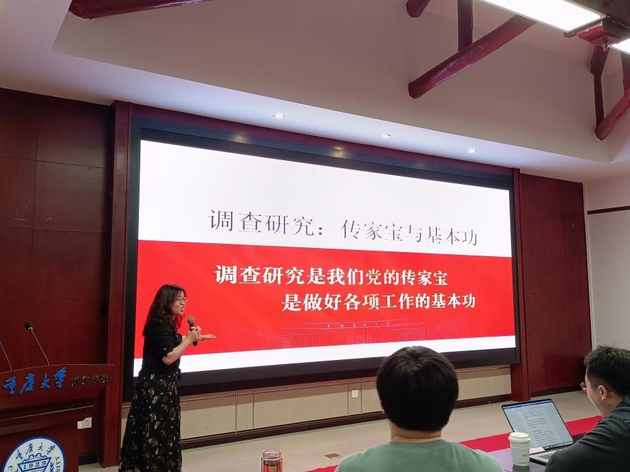 中文系一向高度重视中国共产党的思想引领,将百年来党的先进经验与学科发展相结合。会议第一部分,王瑞静代表教师党员做了主题为“调查研究:基本功与传家宝”的专题报告。她综合党的历史与自身的人类学研究实践,阐述了调查研究的重要意义和应用方法,引发了老师们的热烈讨论。