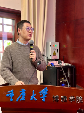 随后,系主任金浪教授就近期科研状况、本科专业评估等工作做出总结和安排。他肯定了本系在教材编写、论文发表、学术活动举办等多方面收获,鼓励老师们推进和校图书馆、出版社、重庆市作协等的合作,争取有更多的成果产出。