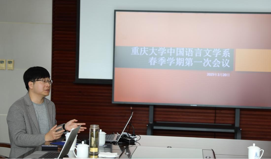 A区主教515会议室召开了本学期第一次全系教师会议。会议由中文系主任金浪教授主持。除政治学习外,本次会议就本学期的人才培养工作、学科建设等议题向全体教师进行了通报。