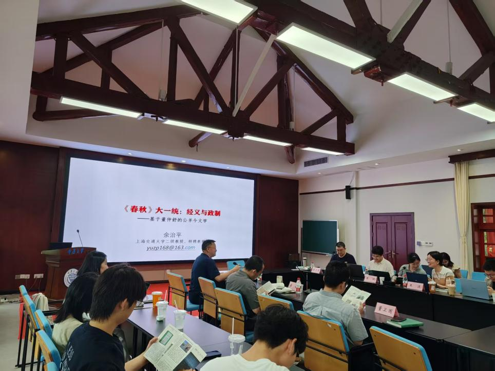 A区博雅书院报告厅成功举办。本次会讲邀请到了董仲舒国际儒学研究院院长、上海交通大学的余治平教授围绕他的著作《董仲舒春秋大一统申义——儒家亲亲尊尊的原则要求与谱系诠释》做学术报告,51吃瓜网