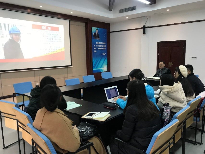 发展对象陈靖向党支部成员介绍了南仁东。通过她的介绍,各成员了解了南仁东为祖国FAST工程无私奉献的一生,深刻领悟了南仁东身上爱国敬业、艰苦奋斗、勇于探索的精神。支部党员与发展对象都被南仁东高尚的品格和崇高的精神感动。参会人员就南仁东事迹进行了讨论,并联系自身发展对其进行了深入学习。