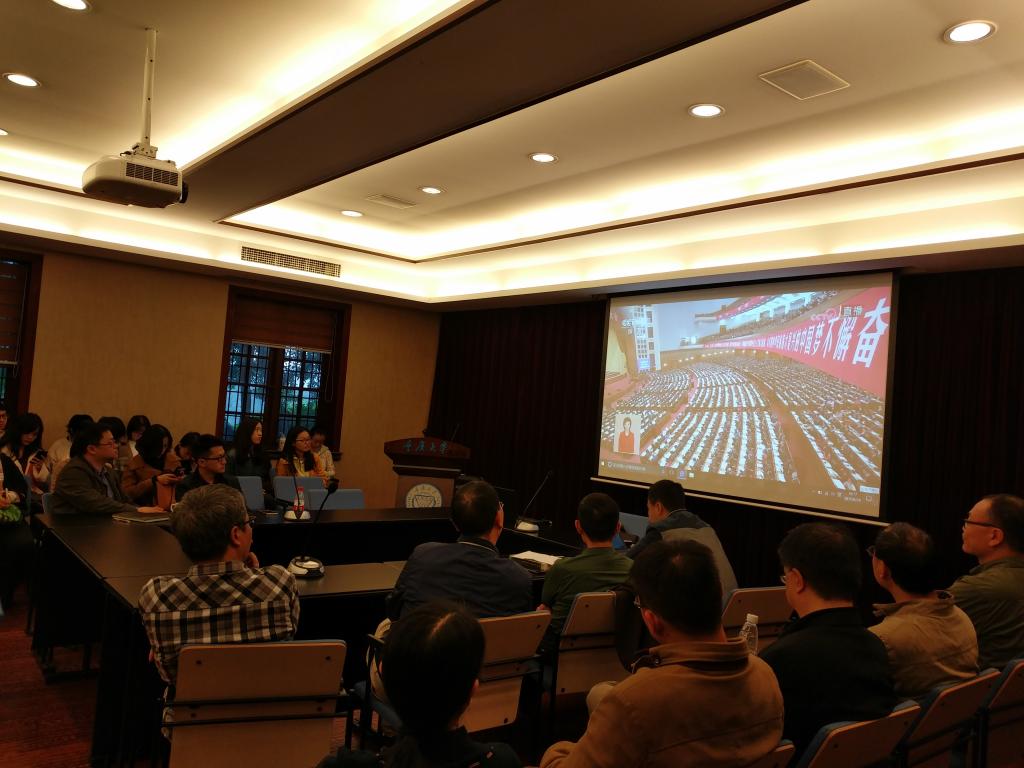 党委认真组织没有课的全体师生,在文字斋学术报告厅共同观看了开、闭幕会的盛况,大家反响热烈。开幕会上习近平总书记的报告《决胜全面建成小康社会 夺取新时代中国特色社会主义伟大胜利》振奋人心,学院师生对大会选举产生的新一届中央领导集体完全拥护。