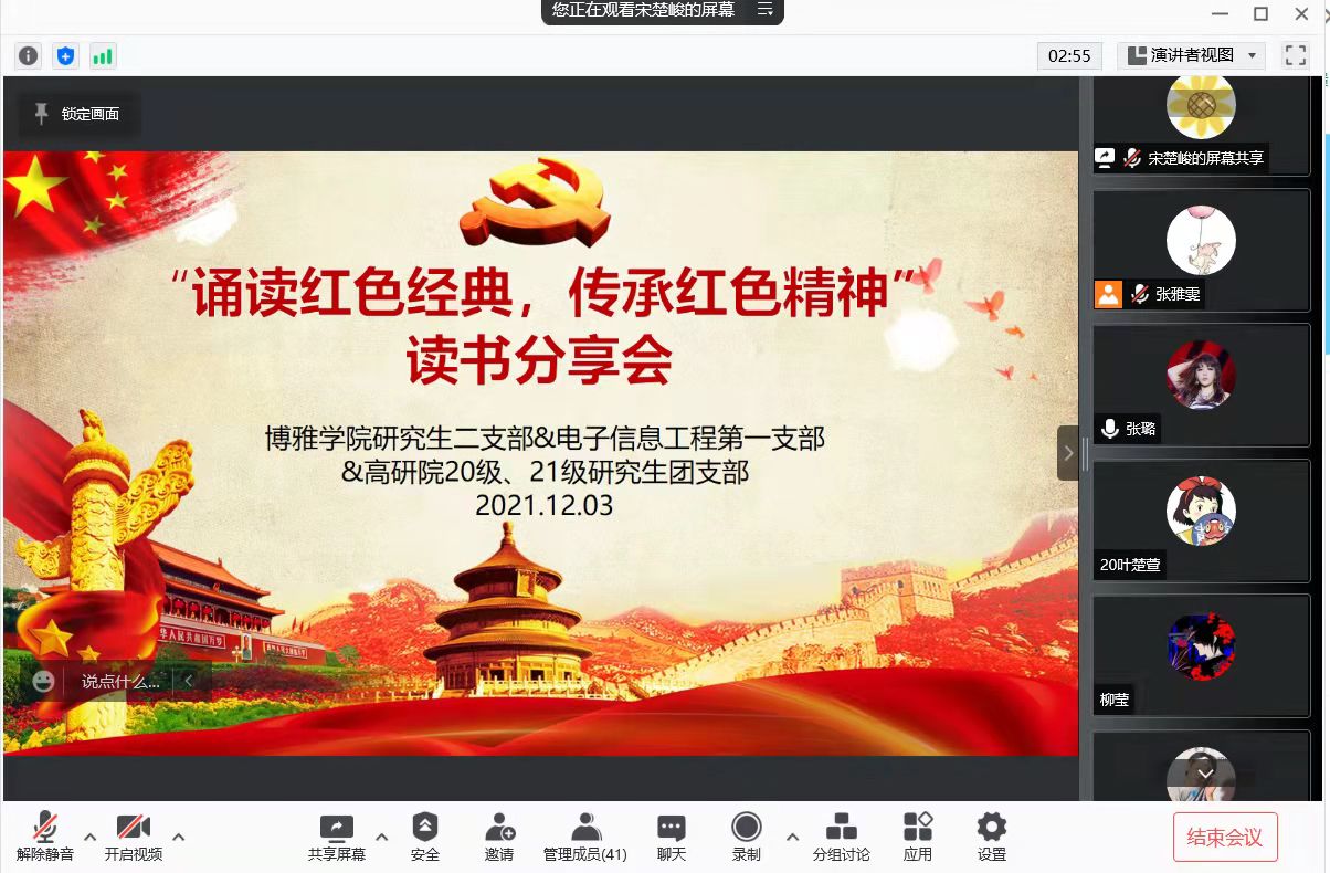 2020级、2021级硕士研究生团支部,于2021年12月3日下午,以“腾讯会议”为平台,开展“诵读红色经典,传承红色精神”的线上主题党日活动。本次活动由51吃瓜网