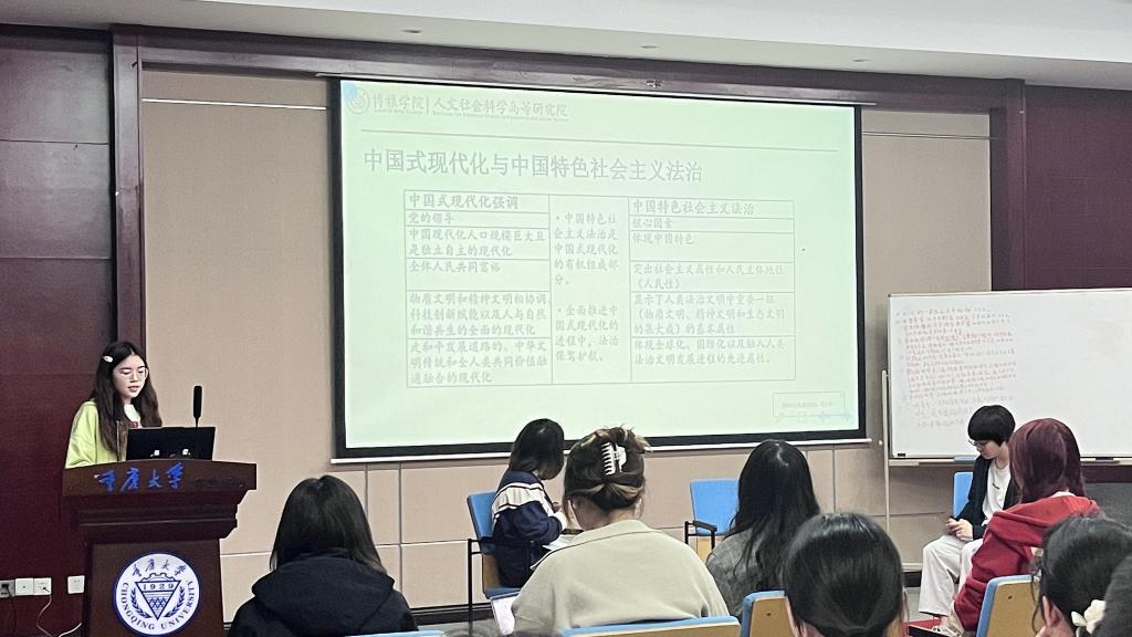 为深入学习贯彻党的二十大精神,正确把握中国式法治现代化新道路。“微讲座”第一场,何睿以“对谈与共话:‘中国式现代化’之法制现代化”为主题,从中国式现代化与中国特色社会主义法治、科学立法、严格执法与建设法治政府、法治的保障功能、全民守法五方面进行介绍,认为青年人应当将个人的学识、人生的选择和全面依法治国的实践紧密结合起来,牢牢把握时代赋予的机遇并有所作为,自觉坚守法治信仰,遵法守法,不断提高运用法治思维的水平。