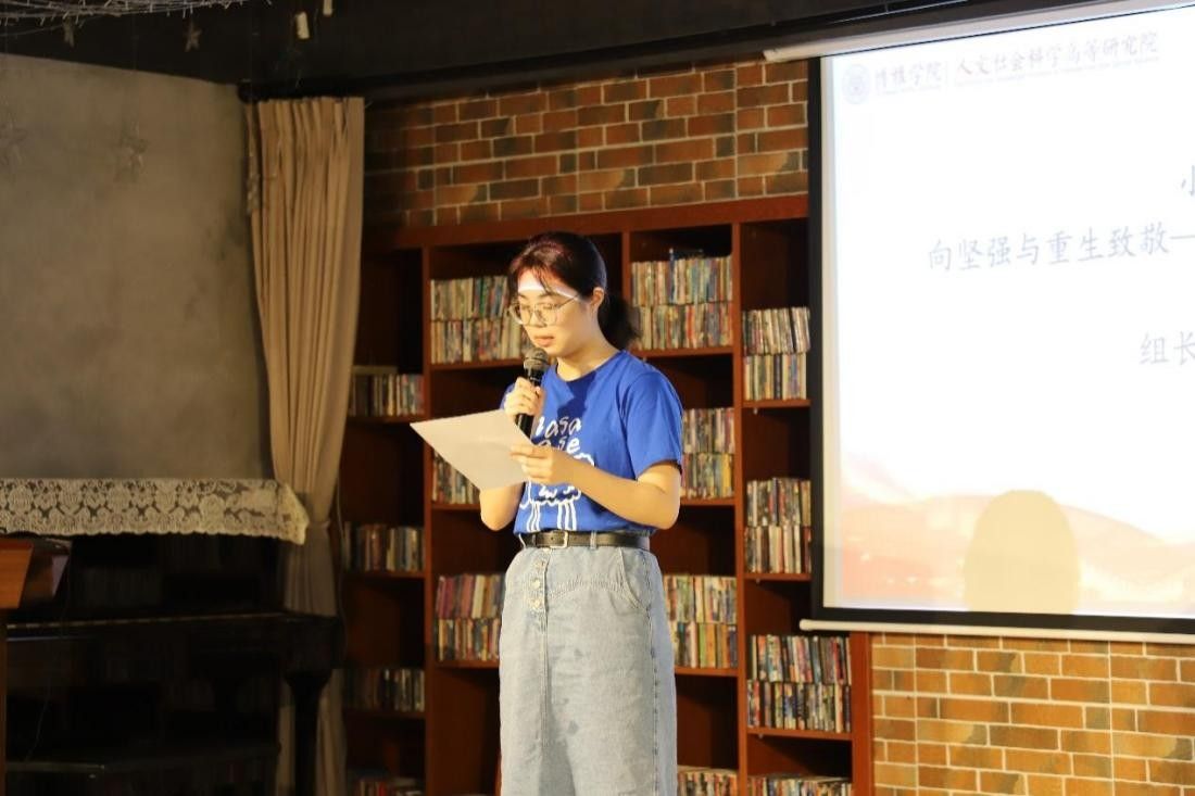 陈雨昕以《向坚强与重生致敬——纪念汶川地震十五周年》为题,结合汶川地震中获救孩子的成长经历,指出互助精神对社会主义建设具有重大意义;李依晓以《进淄赶“烤”》为题,梳理了淄博烧烤爆火的过程,指出当地政府打造“好客淄博”的文化品牌,淄博群众积极配合和响应,共同促成了淄博烧烤的火热局面;田沂霖同志作题为《新时代向雷锋同志学习——纪念毛泽东等老一辈革命家为雷锋同志题词六十周年》的分享,指出雷锋精神是对共产主义精神和中华民族传统美德的生动诠释,并勉励与会同志在平凡的岗位上创造出伟大业绩;陈航天则从立志、立德、立言、笃行四方面出发,以《人文社科学子的责任与担当——我们能做什么》为题进行阐述,指出人文社科学子要重视良好的道德修养、注重全方面本领的提高,将学术追求融入到国家的发展之中去。