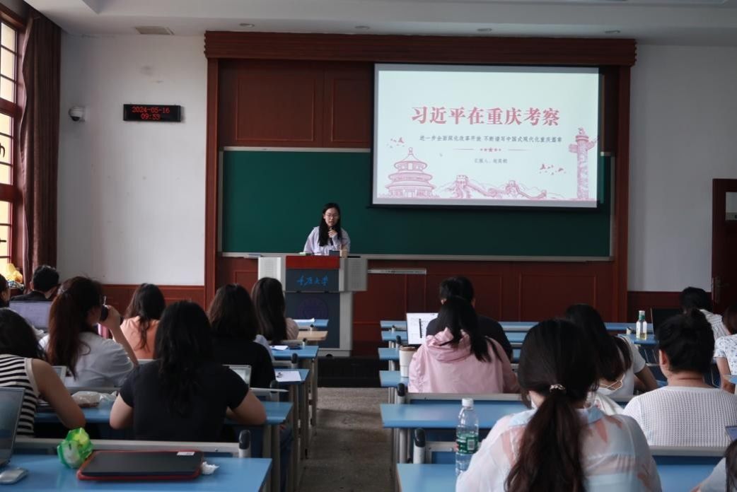 研究生二支部在五教401教室进行了主题学习。楚晓茜、赵奕桐、管煜、崔梦涵四位同志不仅介绍了本次习近平总书记在物流园区、城市社区、数字化城市运行和治理中心等地的考察调研、并就习近平总书记在西部大开发座谈会、听取重庆市委和市政府工作汇报后发表的重要讲话进行了领学,指出了习近平总书记三次赴重庆考察的重要历史意义。此次学习使党员同志们充分认识到重庆的重要战略地位和自身的责任使命,表示作为青年要积极担当,为谱写中国式现代化重庆篇章贡献自己的青春力量。