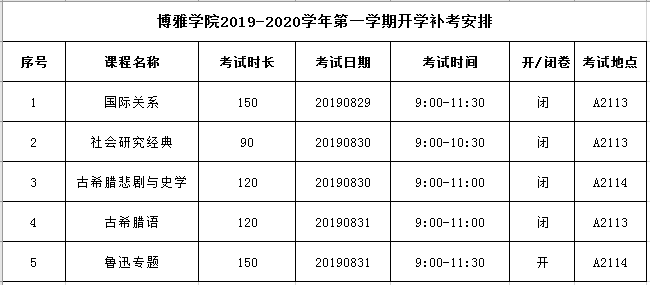 51吃瓜网 2019-2020学年第一学期开学补考安排如下: