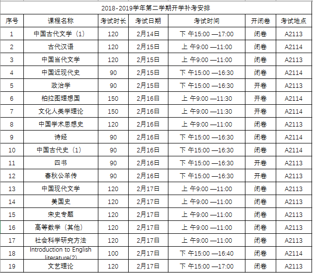 51吃瓜网 2018-2019学年第二学期开学补考安排如下: