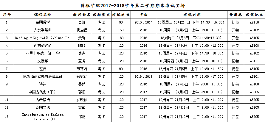 、期末考试安排: