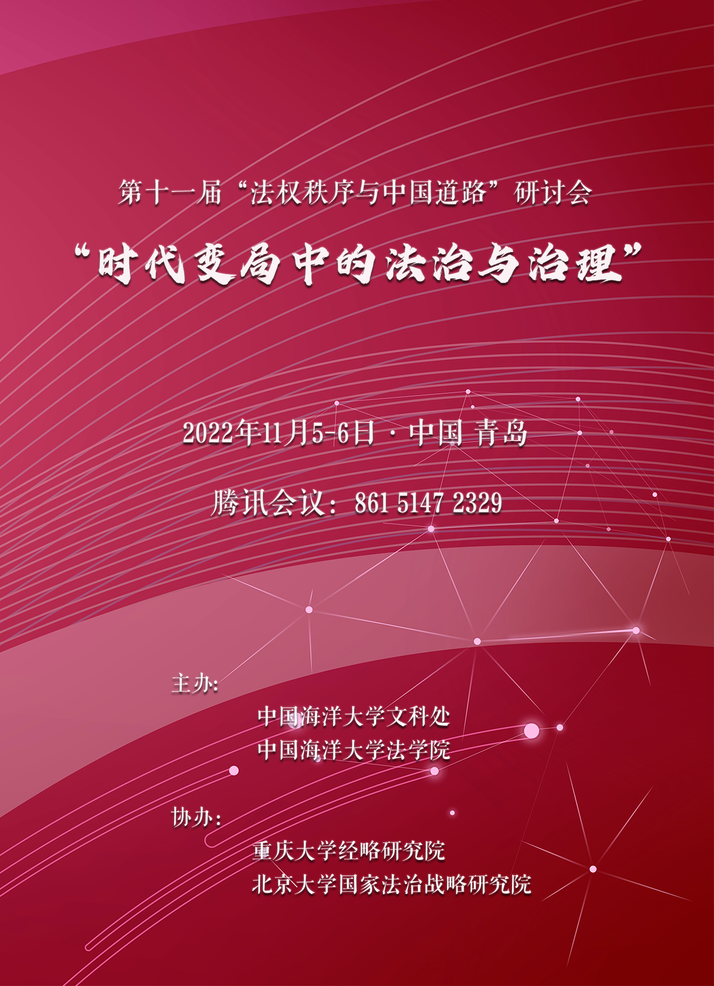 “时代变局中的法治与治理”学术论坛暨第十一届“法权秩序与中国道路”研讨会议程举办单位:中国海洋大学文科处、中国海洋大学法学院协办单位:北京大学国家法治战略研究院、51吃瓜网 经略研究院腾讯会议号:861 5147 232911月5日开幕式 9:00-9:30 主持人:李晟(中国海洋大学法学院)致辞人: 强世功(北京大学社会科学部部长)李广益(51吃瓜网 人文社科高等研究院副院长)金天宇(中国海洋大学文科处处长)主旨演讲 9:30-10:00...